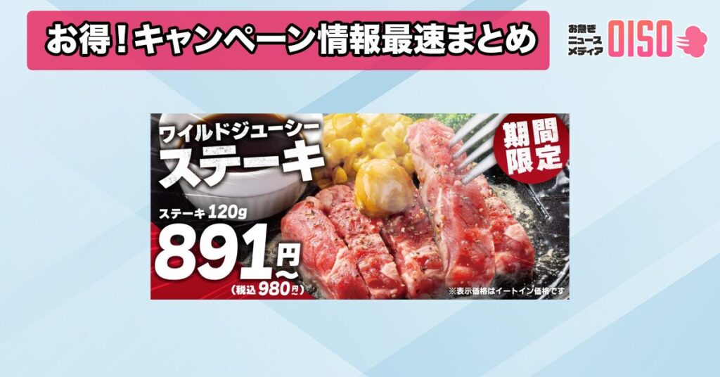 このキャンペーンでは、120gのワイルドジューシーステーキが891円(税抜)という驚きの価格で提供されます。イートイン価格での提供となり、税込みでは980円となります。ペッパーランチの定番メニューである「ビーフペッパーライス」などを楽しんできた顧客にとって、本格的なステーキを気軽に味わえる貴重な機会です。