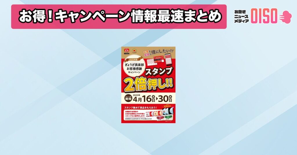 餃子の王将、2025年版ぎょうざ倶楽部お客様感謝キャンペーン「スタンプ2倍押し!!」を実施