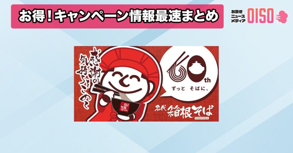 株式会社小田急レストランシステムが運営する「箱根そば」は、2025年8月に60周年を迎える。これを記念し、箱根そば全店および箱根そば本陣にて、2025年4月16日から数量限定で「箱根そば60周年記念クーポン券」を無料配布することを発表した。このクーポン券は、箱根そば自慢の「かき揚げ天」が6枚綴りになっており、食事をしたお客さまに配布される。