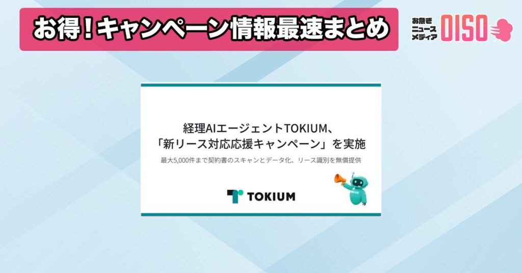 経理AIエージェントTOKIUMが「新リース対応応援キャンペーン」を実施