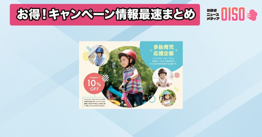 多胎育児家庭を応援するniccoヘルメットの10%OFFキャンペーン