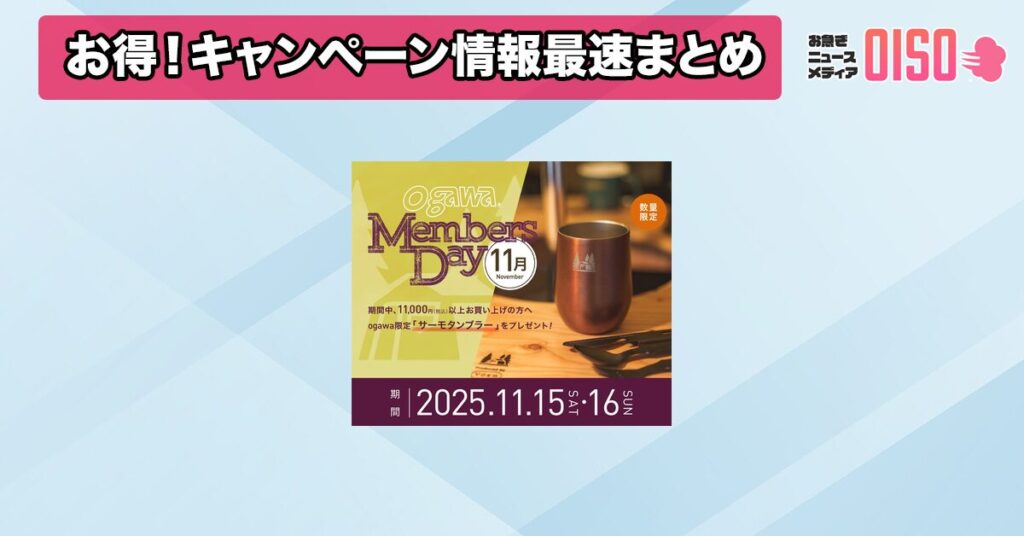 11月のogawaMEMBERS DAYは15(土)・16(日)!ロゴ入りサーモタンブラーをプレゼント