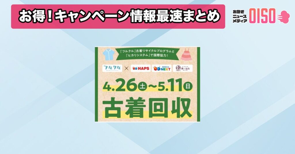 株式会社ヒカリシステムが、認定NPO法人ブリッジエーシアジャパン(BAJ)が推進する古着リサイクルプログラム「フルクル」との協力キャンペーンを、2025年4月26日から全8施設で同時開催することを発表した。この取り組みは、地域社会への貢献と環境保全を目指しており、昨年の成功を受けての拡大となる。