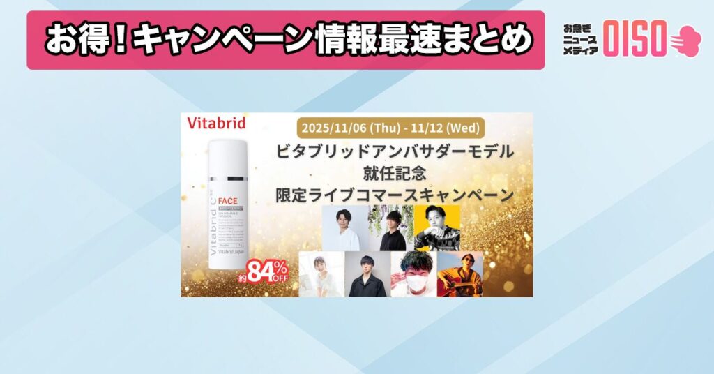 2025年11月6日から11月12日までの期間、17LIVE株式会社が運営するライブ配信アプリ「17LIVE」は、株式会社ビタブリッドジャパンが展開するスキンケアブランド「ビタブリッドシリーズ」の公式アンバサダーとして7名のイチナナライバーを選出し、ライブコマースキャンペーンを実施することを発表しました。このキャンペーンでは、ビタブリッドシリーズの人気商品「ビタブリッドCフェイス」を中心に、特別なセットが紹介される予定です。